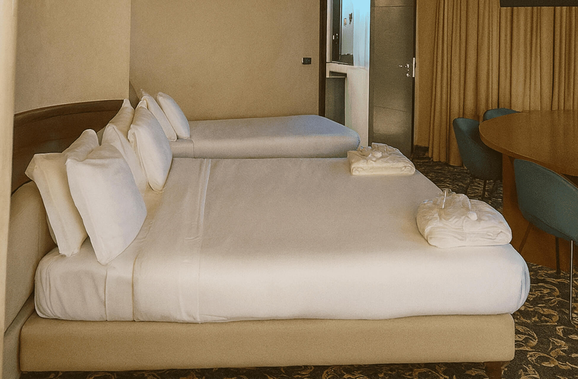 At Dado Hotel, every stay becomes an experience of comfort and quality. The same attention to detail and care that defines our common areas is reflected in our 104 rooms and 4 suites, each unique in its own way. Furnished with solid wood furniture, premium parquet flooring, crystal showers, and fine linens, our rooms are designed to offer an oasis of relaxation and style. Every detail, from carefully selected materials to harmonious tones, is chosen to create a welcoming and rejuvenating atmosphere, where guests can fully enjoy the pleasure of a high-level stay.